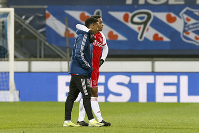 Het was een mooi plaatje, na de eenvoudige 3-0-zege van Ajax in en op Heerenveen. Jurriën en tweelingbroer Quinten zochten elkaar op. De armen om elkaar heen. Gebroederlijk, precies dat. Samen spelen in Ajax 1. Voorlopig nog heel even een droom, maar hoe lang nog? Het is mooi dat de fotograaf het spotte, maar er is nog veel meer. Kijk maar!