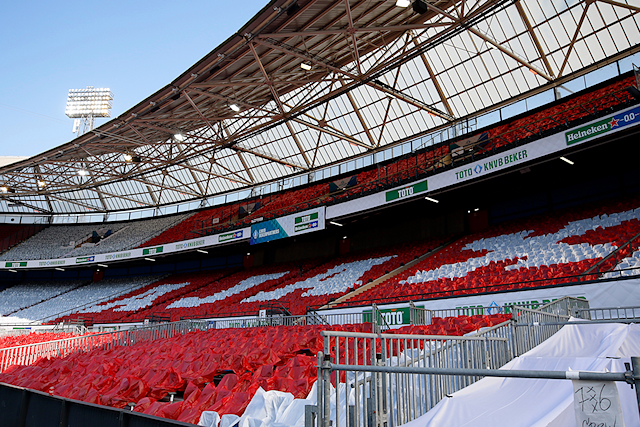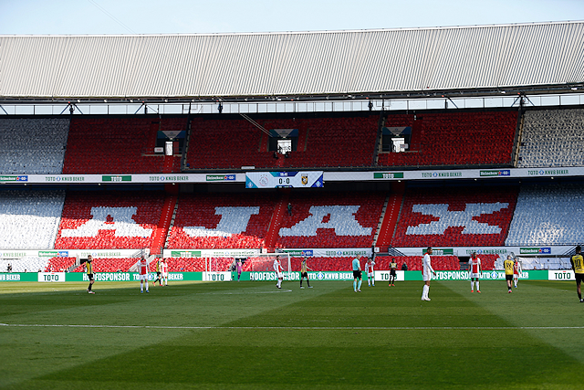 We zaten zondagavond met een dubbel gevoel in De Kuip. De prachtige sfeeractie van Ajaxsupporters was er eentje om door een ringetje te halen en de spelers grepen de KNVB-beker. Maar alle feestelijkheden vonden plaats in een leeg stadion. Dat voelde meer dan rot, maar gelukkig hebben we de foto's nog!