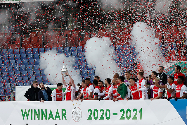 Maar goed, dat komt later. Eerst nog even terug naar de zondag. De dag waarop Ajax de eerste prijs van seizoen 2020/2021 veiligstelde. Uitgerekend David Neres – die nogal worstelt met zijn vorm – voltrok in blessuretijd het vonnis en nam de wedstrijdbal mee naar huis.