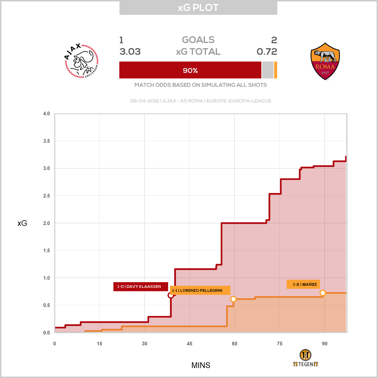 Niet alle hoop is verloren, maar het wordt uit in Rome een lastig verhaal. We blikken terug op Ajax - AS Roma aan de hand van de passmaps, Expected Goals, halfspaces en Zone 14 plots, verkregen via @11tegen11!