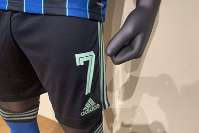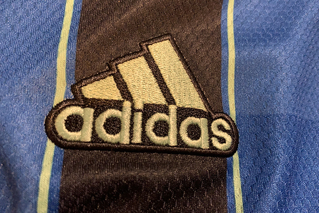 Onze eerste indruk bij het zien van het shirt: Club Brugge, Grêmio, Atalanta Bergamo en Internazionale. De verticale strepen en kleurstelling doen je daar snel aan denken. Het tenue heeft om die reden ook best veel raakvlakken met het uitshirt van seizoen 1993/1994. Kijken we iets verder, dan ontwaren we mintgroene details. De Adidasstrepen en bedrukking hebben die kleur, evenals dunne lijntjes tussen de strepen op het shirt.