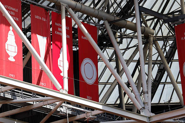Complimenten dus voor VVV, maar ook zeker voor de vrijwilligers die de fraaie choreo mogelijk hebben gemaakt. De lange zijde van de Arena was prachtig versierd met rode vuilniszakken, terwijl we de drie kampioenssterren en ‘XXXV’ in het wit terugzagen.