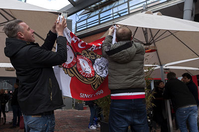 Zo ontstond alsnog een kortstondige, maar hevige huldiging. De wisselwerking tussen supporters en spelers was er weer even en dat levert een flinke lading foto's op, waarover de meningen uiteraard nogal uiteen lopen.