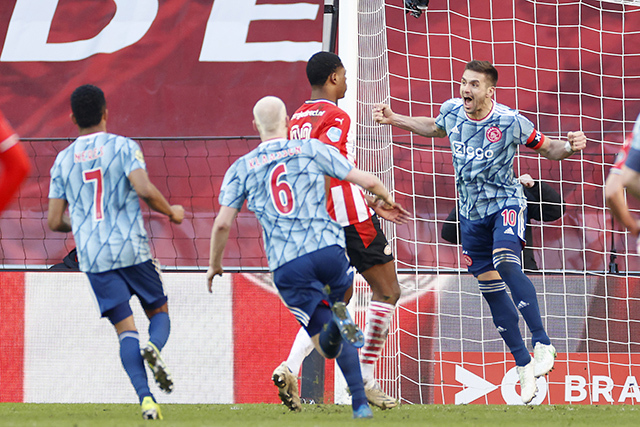 Wat gebeurde er ook veel: jonkies Timber en Rensch grepen hun kans, het gehannes rond Brobbey, de zaak Promes, de plaspil van Onana, het vergeten vinkje achter de naam van Haller, de belangrijke goals van Klaassen, de stroom aan assists van Tadic, wisselend succes in Europa en een apotheose met een spontaan kampioensfeest naast de Johan Cruijff Arena.