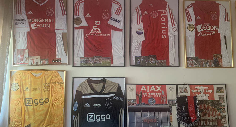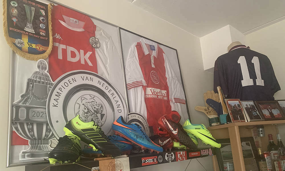 Het is slechts een fractie van spelersgedragen kleding of schoeisel. De vraag aan Roel is onvermijdelijk. Is dit een verslaving? “Haha, eigenlijk wel. Ik ben wel elke dag met Ajax bezig. Je praat met andere verzamelaars, informeert of zij nog iets hebben. Het is best een groot wereldje en het wordt ook steeds gekker. Ajax is populairder dan ooit. De prijzen voor spullen gaan ook hard omhoog.”