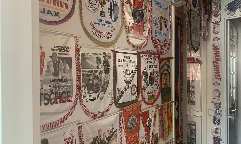 “Hey man, kom binnen,” klinkt het enthousiast en gastvrij. Voor Ajacieden is de woning van Roel een walhalla. Alles ademt Ajax. We zijn eigenlijk een beetje onder de indruk. Zo veel Ajaxhistorie daalt in één klap op ons neer. Het is even acclimatiseren en Roel moet erom glimlachen.