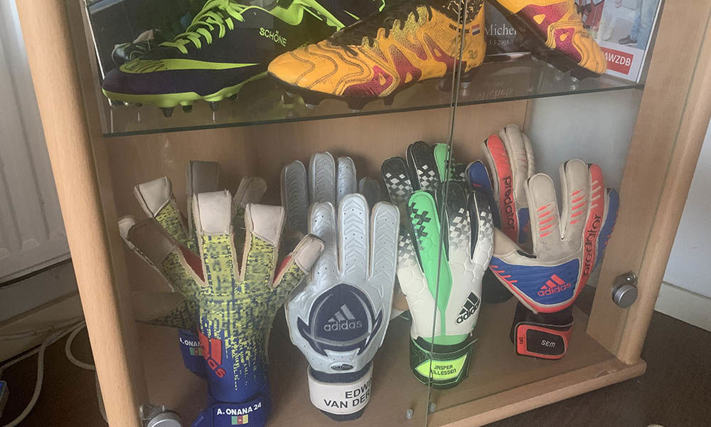 “Vroeger was het makkelijker,” stelt Roel, doelend op de tijd dat je nog wel eens naar een training kon kijken en iets unieks scoorde. “Nu is alles besloten. Het is niet meer zo laagdrempelig als het voorheen was. Ik ben rond mijn zestiende begonnen met verzamelen. Je begint met een vlaggetje, een wedstrijdshirtje… Na een training kreeg ik de kicksen van Kenneth Perez. Toen was het hek gauw van de dam. Je begint met één kast en nou ja, je ziet wat ervan terecht is gekomen.”