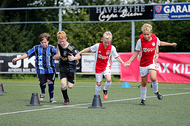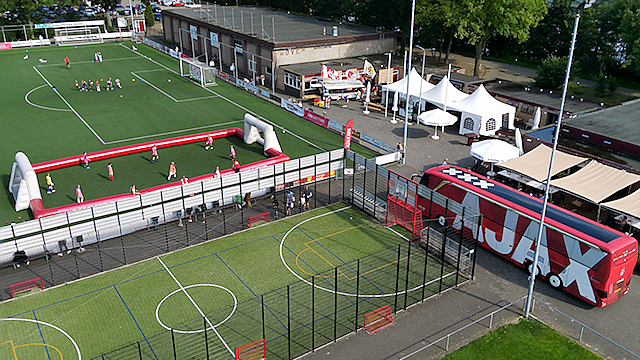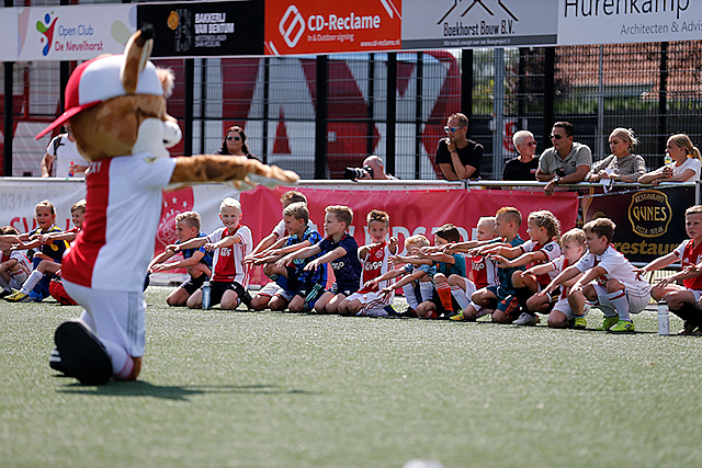 Maar liefst tweehonderd Ajax Kids Clubleden en leden van DVC'26 waren van de partij. De spelersbus trok aan als een magneet, want hoe tof is het om te zien waar Dusan Tadic, Antony en Noussair Mazraoui normaal gesproken zitten? Maar daarna was het tijd voor actie op sportpark De Nevelhorst.