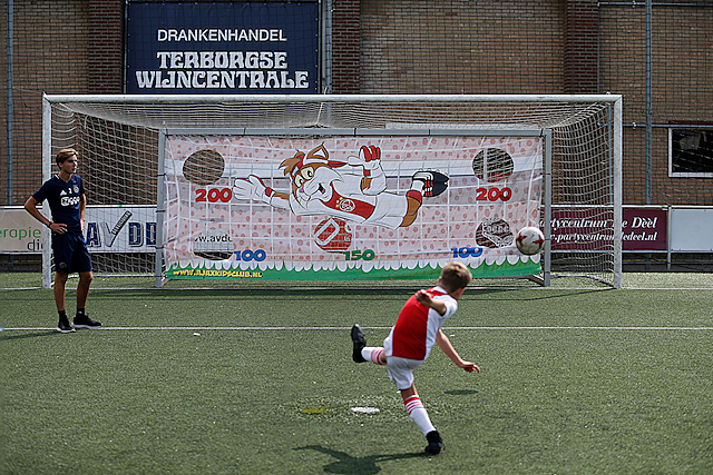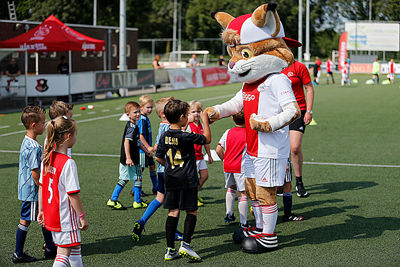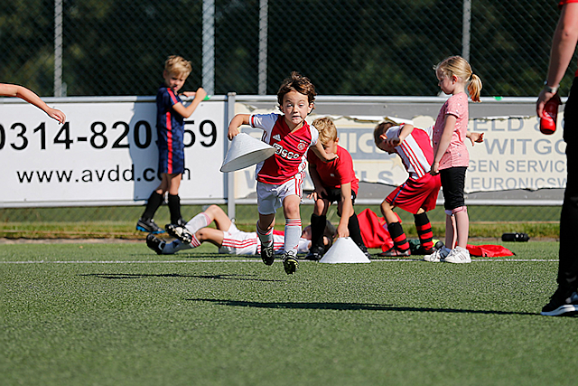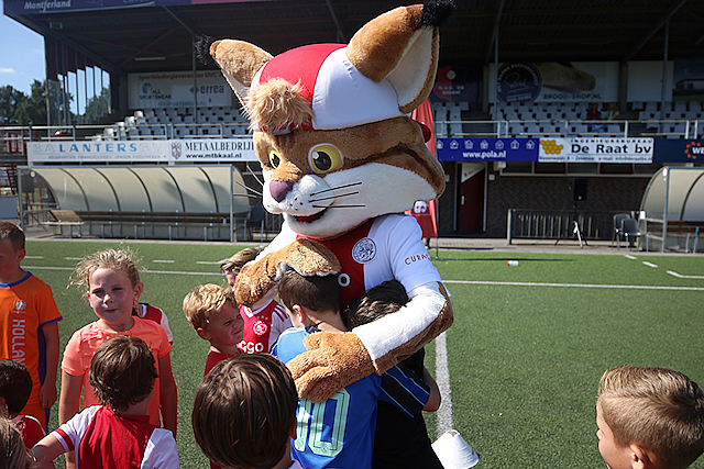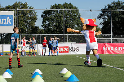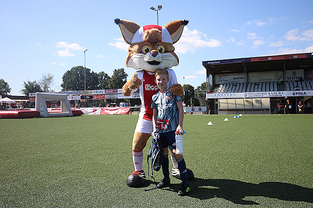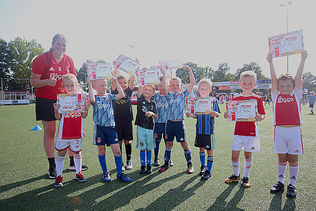 Natuurlijk ging Lucky voorop in de warming-up en toen de spiertjes lekker waren losgegooid konden de kinderen los met de bal. Voetballen met leeftijdsgenootjes en Lucky, kan het leuker? De deelnemertjes mochten Ajax Kids Clublid Naud dankbaar zijn, want hij had zijn cluppie DVC'26 opgegeven als locatie voor deze Ajax Kids Tour. Iedereen ging blij naar huis met een heus diploma op zak!