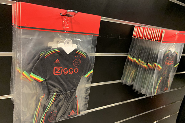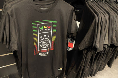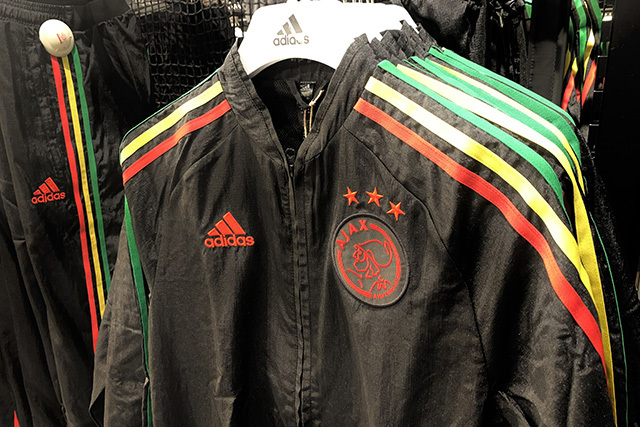Bob Marley-hoodie, -schoenen, -trainingsbroeken en -jassen. Ajax en Adidas pakken flink uit met de lancering van een heuse rasta-kledinglijn bij het vrijdag gepresenteerde Europese shirt. De hele handel kan wel eens heel goed in de smaak vallen bij veel Ajacieden. Wij schoten alvast wat plaatjes in de Fanshop!