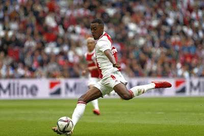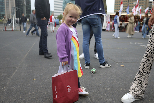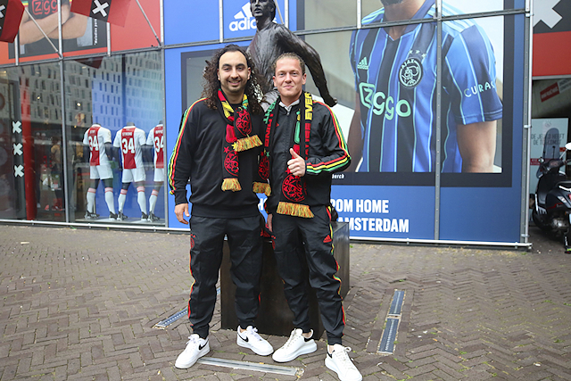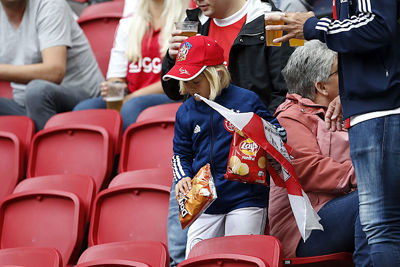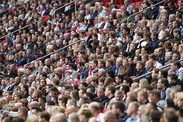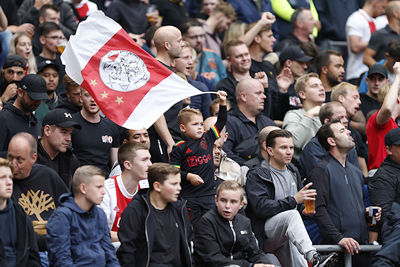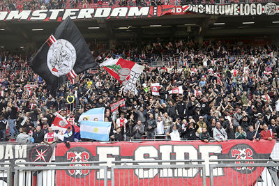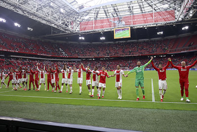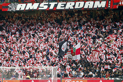 Niet alleen Ajax was in vorm, dat was onze fotograaf De Brouwer ook. Er viel dan ook genoeg op de gevoelige plaat vast te leggen. Heerlijk vlagvertoon voor het behoud van 'die ouwe' op het shirt, een al vroeg juichende Arena en de 'gouden' Antony die zijn ploeggenoten al vliegensvlug voorzag van de juiste spirit. Vrolijke gezichten op de tribunes en dat smaakt naar meer.