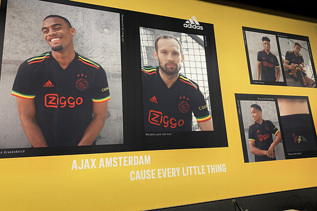 De rastakleuren groen, geel en rood zijn prominent aanwezig op het derde tenue van Ajax. De Adidasstrepen zijn hiervoor gereserveerd. Al deze kleuren hebben ook een betekenis. Zo staat groen voor vruchtbaarheid, geel voor rijkdom en de kleur rood voor het bloedvergieten tijdens de slavernij. Serieuze thema’s dus.