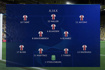 Zo hebben Edson Álvarez, Mohammed Kudus, Lisandro Martínez, Jurriën Timber en Antony duidelijk geen ‘facescan’ gekregen, maar desalniettemin zijn ze wel herkenbaar door in elk geval de juiste haarstijl en dergelijke. Wellicht dat de digitale return tegen Dortmund in Fifa22 beter uitpakt. Dat gebeurt in een mooi nagemaakte Johan Cruijff Arena.