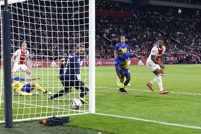 Het ‘tien, tien, tien’ klonk al meerdere malen in de Arena, maar na het negende doelpunt zette het publiek éxtra hard aan. Het scheelde niet veel of Ajax was met dubbele cijfers van het veld gestapt. Wat als die bal van Ryan Gravenberch niet op de paal was beland?