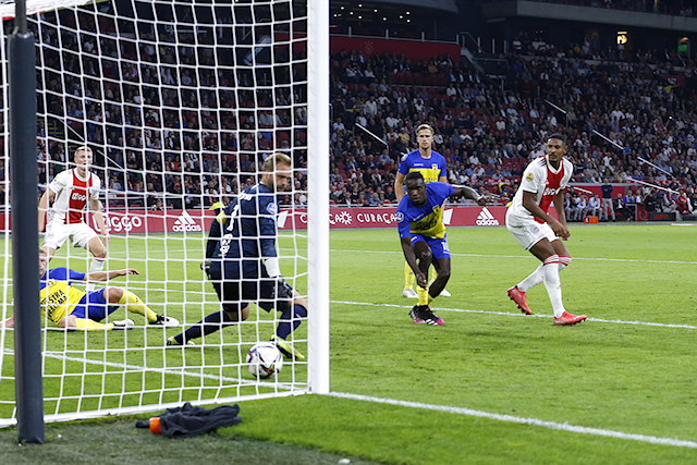 Het leek er de eerste vijftien minuten totaal niet op, maar aan het einde van de rit stond er ‘gewoon’ een uitslag van 9-0 op het scorebord. Jurriën Timber tekende voor de openingstreffer, waarna Ajax was ontketend en de ene na de andere treffer tegen de touwen werkte.