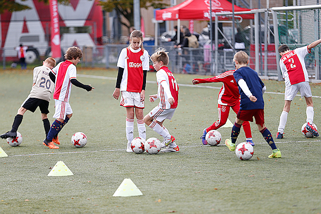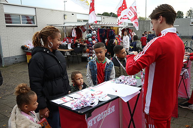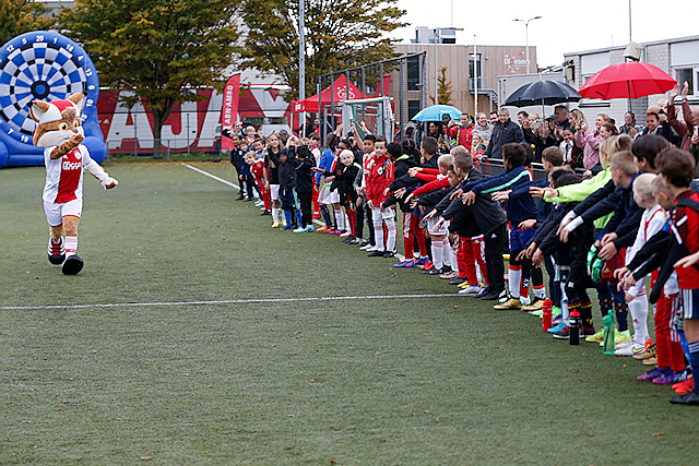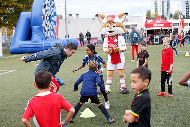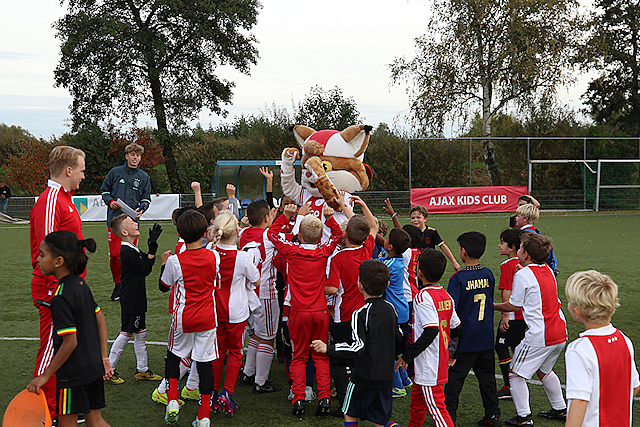 We zagen wederom een bonte verzameling aan Ajaxshirtjes. Lucky deelde high-fives uit en er werden flink wat voetbalspellen gespeeld. Laat dat maar aan de leden van de Ajax Kids Club over. Die hebben altijd zin om een balletje te trappen.