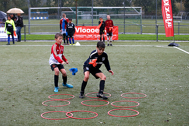 De dag begon druilerig en nat, maar daar laten fanatieke voetballertjes zich niet door weerhouden! Ook met wat regendruppels kun je jezelf prima in het zweet werken. En in de middag kregen we soms zelfs een zonnestraaltje cadeau.