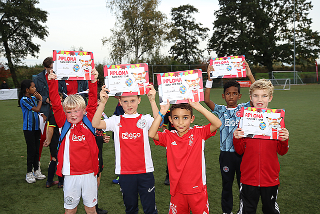 Lekker voetballen met een paar honderd andere Ajaxsupportertjes bij je eigen club. Dat is de Ajax Kids Tour, powered by ABN-Amro. Ook op bezoek bij SV Diemen deden de Ajaciedjes onder begeleiding van professionele trainers een heleboel voetbalspelletjes.