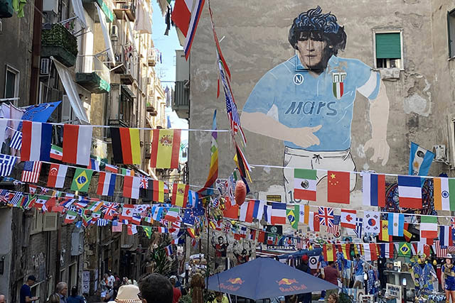 Napels is een prachtige stad, met een rauw randje. Ajax waarschuwde niet voor niets om voorzichtig te zijn. Wie zich aan dat advies houdt, ontdekt ook de mooie kant van de stad. Wanneer je ronddwaalt in de schilderachtige straatjes van de Spaanse wijk, merk je direct dat Napels voetbal ademt. Waar je ook kijkt, overal vallen muurschilderingen van Diego Maradona te ontwaren.