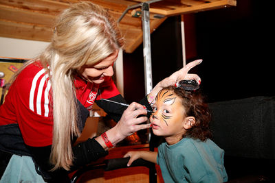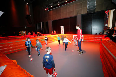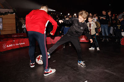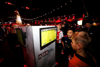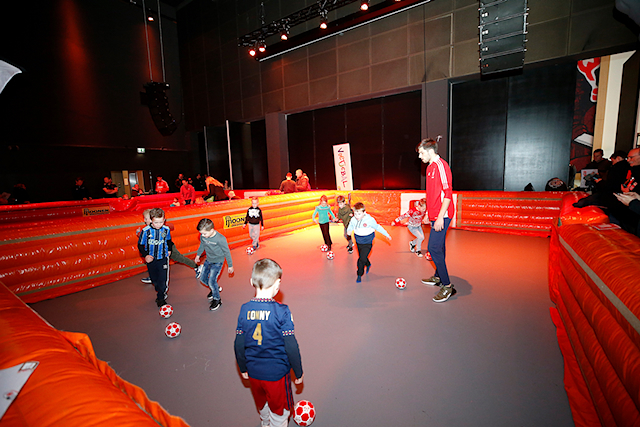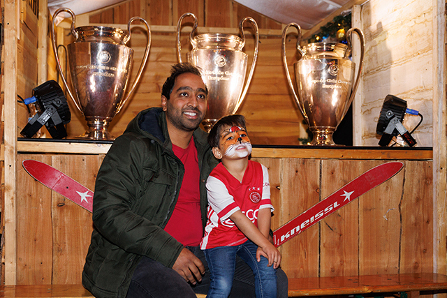 Wat er verder allemaal viel te beleven? Er waren springkussens, trampolines en een dribbelparcours. Je kon met digitale Ajaxspelers op de foto, je laten schminken of een documentaire over onze mooie club kijken. Onze eigen karikatuurtekenaar Henri was van de partij en natuurlijk kon je een kijkje nemen in de officiële spelersbus van Ajax. En wat te denken van een heuse wintersleebaan?