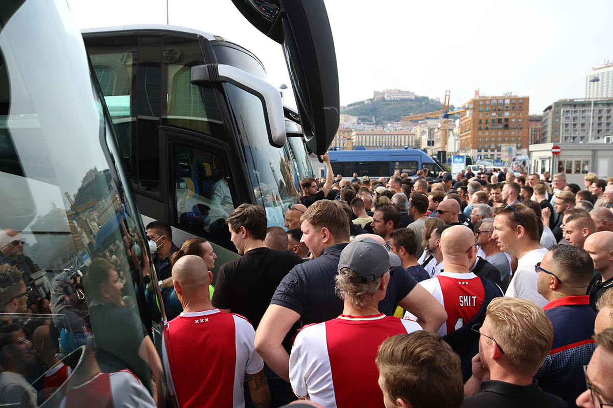 Nog voor de rust dondert de offensieve linksachter heel naar in een greppel achter de achterlijn. Blijkbaar normaal in Britse stadions, zo’n mini-ravijn waar je roemloos in kunt verdwijnen. Het uitvak met Ajaxsupporters ziet meteen: hij komt niet lekker neer. Wat blijkt: weer schade aan dezelfde enkel. Zijn aftocht doet het ergste vrezen.