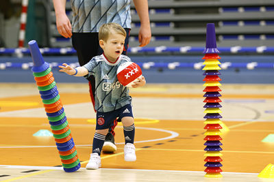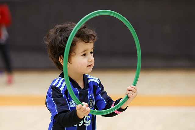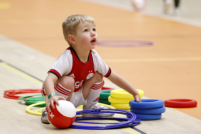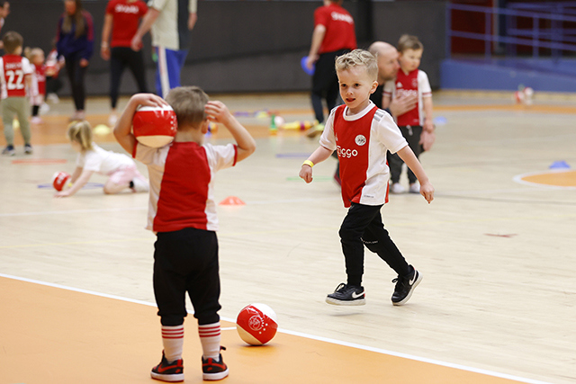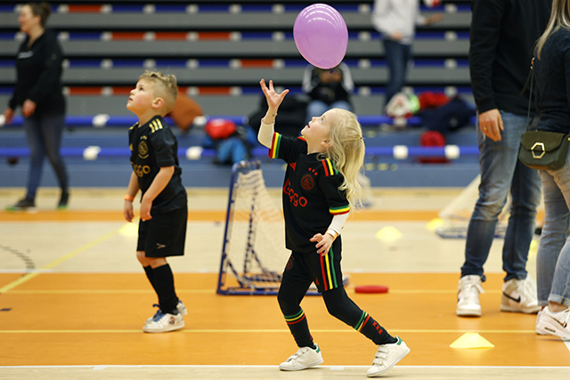Of dat een beetje leuk was? Wij denken dat onderstaande foto’s genoeg zeggen! We zien jonge Ajaciedjes de dierendans doen, balanceren met pitzakjes op het hoofd en hooghouden met een ballon. Dat gebeurde natuurlijk allemaal onder leiding van ervaren Voetjebaltrainers.