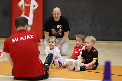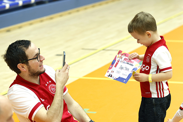 Het is altijd leuk als Lucky met nieuwe ideeën komt. Ditmaal bedacht onze pluizige mascotte om een voetbalochtend te organiseren voor de jongste leden van de Ajax Kids Club. Er is immers niets leuker dan plezier maken met leeftijdsgenootjes en natuurlijk je papa of mama!