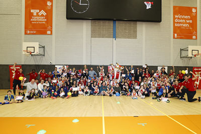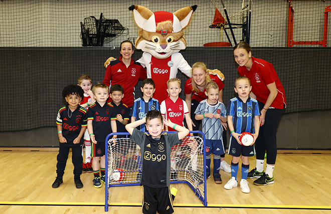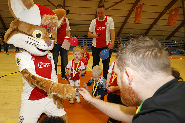 Voetjebal is bedacht voor peuters en kleuters vanaf 2 jaar, die het leuk vinden om actief bezig te zijn. Nou, dat laat Lucky zich geen twee keer zeggen. De vrolijke lynx trommelde meteen een flinke groep Ajaxsupportertjes op, om samen plezier te maken. Maar liefst 121 Debutantjes en Dribbelaartjes waren zaterdag van de partij in Amsterdam.
