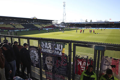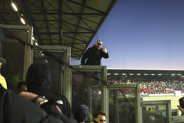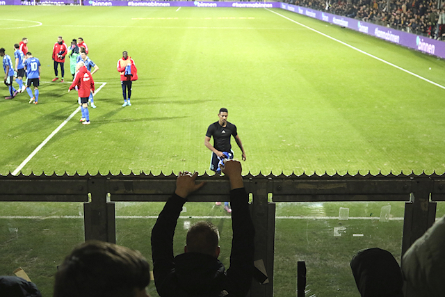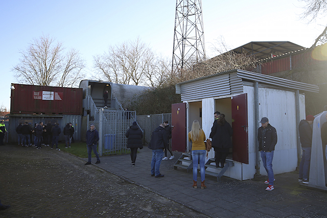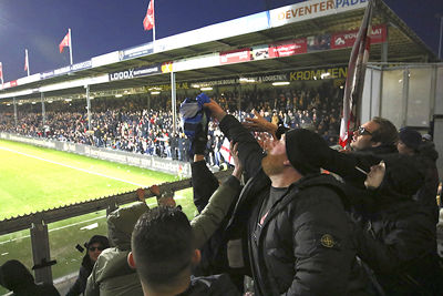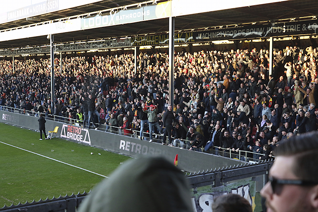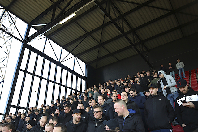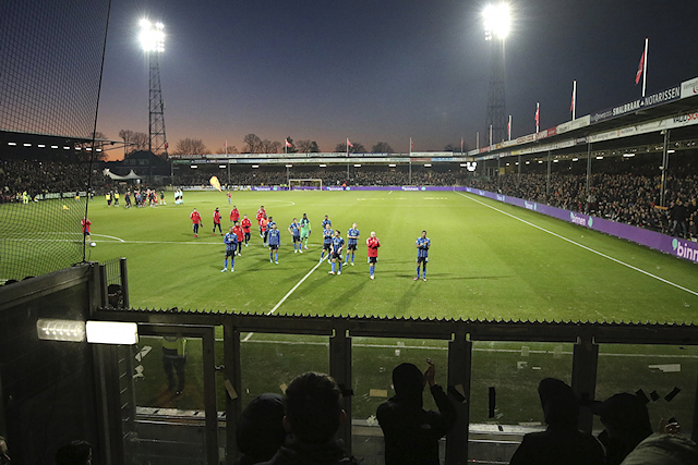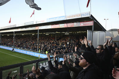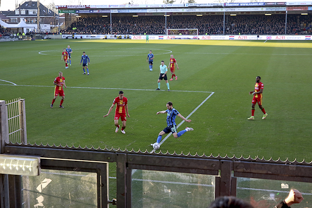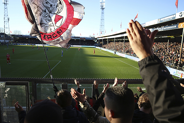 Het uitzicht in het uitvak van De Adelaarshorst is niet overal even goed. Dat was voor sommige meegereisde Ajaxsupporters achteraf misschien maar beter ook. Ajax liet zich in Deventer lelijk te kijk zetten en verloor met 2-1. Hier volgt het fotoverslag.