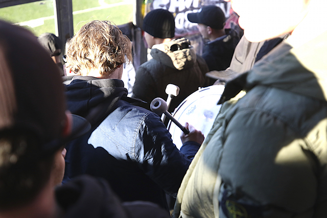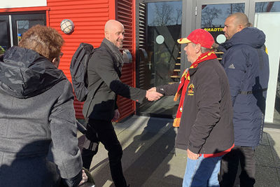 Je zou denken: niks gemist, maar alle doelpunten vielen aan de overzijde. In het deels oude stadion – waar de wc-deuren niet meer op slot kunnen – kwam de sfeer vooral van de thuissupporters. Logisch, want zij zagen hun ploeg stunten tegen Ajax. Als vanzelf krijg je dan als uitsupporter te maken met wat popiejopie’s die tof komen doen bij het uitvak. Hoort er allemaal bij.