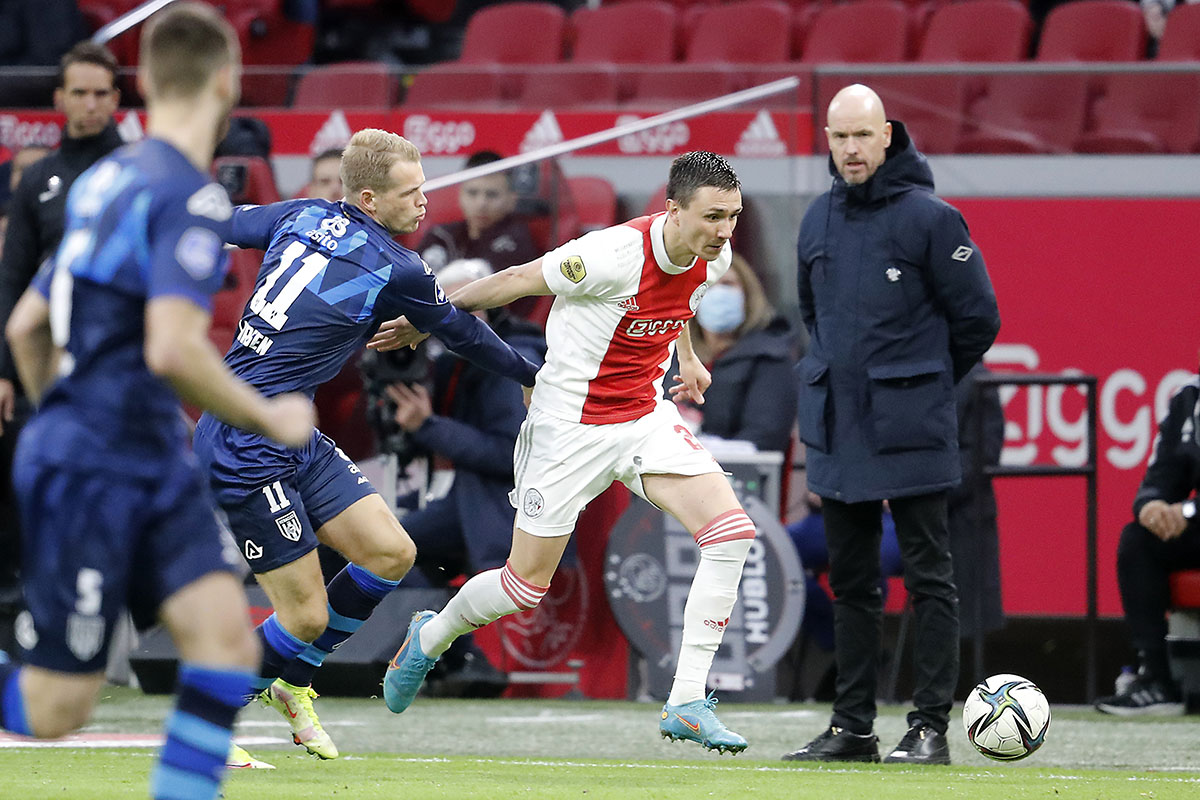 Ten Hag ziet in Klaassen een belangrijke aanjager binnen de lijnen. Dat wil zeggen: als hij daar ook mag acteren. Met Antony op rechts en Steven Berghuis achter de spits, staat Klaassen er immers veelvuldig naast. De middenvelder stak nooit onder stoelen of banken dat hij het moeilijk heeft met zijn rol en dat was na zijn basisplek tegen Heracles (3-0) niet anders.