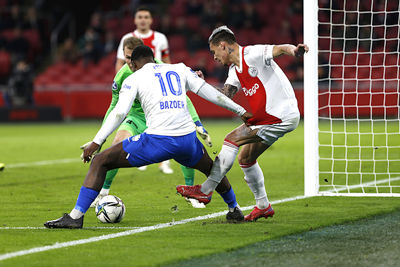 Ajax won woensdag met zichtbaar plezier en speels gemak van Vitesse (5-0) en mag zich halvefinalist noemen in de strijd om de KNVB-beker. Na alle ellende rond het onvermijdelijke vertrek van Marc Overmars, konden we ons weer even op dat heerlijke spelletje richten. Hoe iedereen daarvan genoot, blijkt wel uit de foto’s.