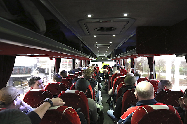 Het voelde weer lekker ouderwetsch. Verzamelen op Noord om daar de bus te pakken voor een onvervalste awayday. Op het dek stonden traditiegetrouw veel touringcars klaar, maar we misten er nogal wat van Oostenrijk. Een deel van de supporters stapte in een heuse ‘love-bus’. Gezellig!