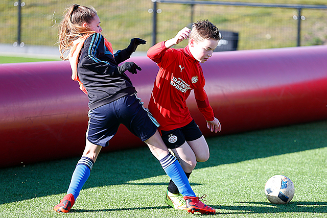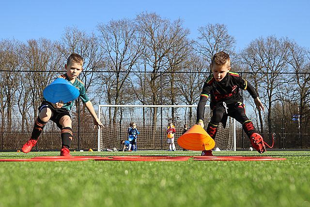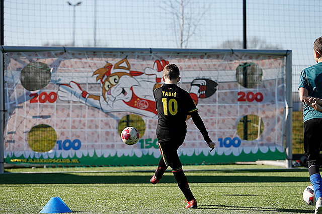 Lekker voetballen met een paar honderd andere Ajaxsupportertjes bij je eigen club. Dat is de Ajax Kids Tour, powered by ABN-Amro. Ook op bezoek bij EGS’20 deden de Ajaciedjes onder begeleiding van professionele trainers een heleboel voetbalspelletjes.