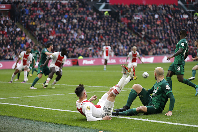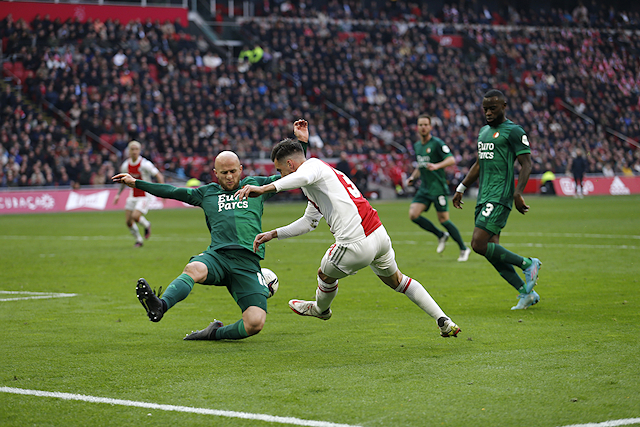 Al na dertien minuten klonk het ‘voetballen voetballen’ in de Johan Cruijff Arena. We hoeven niemand te vertellen dat dit geen positief teken is tijdens een klassieker waar de bal nog geen kwartier rolt. Ajax leek geen schim van zichzelf en zag Feyenoord tweemaal op voorsprong komen.