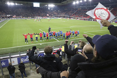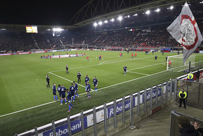 Het uitvak in Alkmaar was niet uitverkocht. Dat is opmerkelijk als je een halve finale naast de deur speelt, maar zij die wel waren afgereisd, maakten er het beste van. En flink ook! De supporters gingen volle bak en waren negentig minuten lang goed te horen in de huiskamers bij Ajacieden voor de buis.