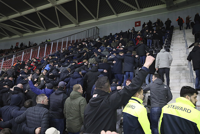 Waar het eerste elftal van Ajax in de file kwam te staan op de A9, daar was dat voor de supporters niet anders. Door wat politiebegeleiding over de vluchtstrook, kwam iedereen toch tijdig aan. De bewoners van het uitvak zagen een wedstrijd vol opstootjes, ergernissen en vervelende valpartijtjes aan beide zijden.