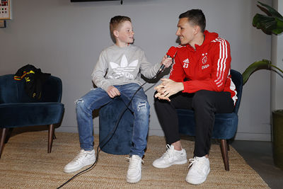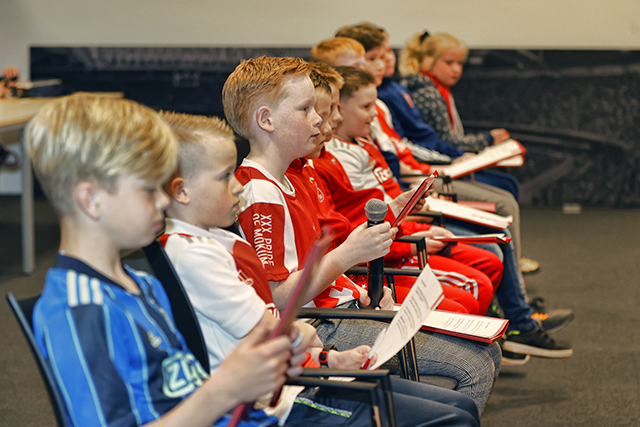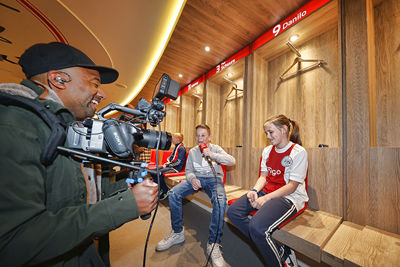 We kunnen ons voorstellen dat zo’n Ajax Kids Club persconferentie best spannend is. Daar viel bij de gelukkige winnaars echter weinig van te merken. De jeugdige Ajacieden waren vooral reuze enthousiast en konden niet wachten om in de huid van een echte journalist te kruipen.