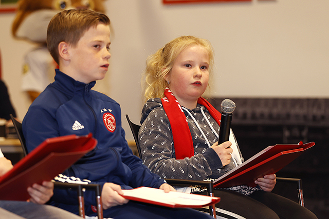 De Ajacieden bekenden na afloop dat ze de Ajax Kids Club persconferentie stiekem het leukste mediamoment van het jaar vinden. De vragen van de volwassen journalisten kennen ze inmiddels wel.