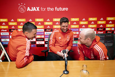 Er werd dan ook veel gelachen in de perszaal van de Johan Cruijff Arena en de fotograaf van Pro Shots bracht alles op fraaie wijze in beeld. We hebben ook een toffe video gemaakt.