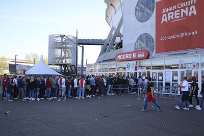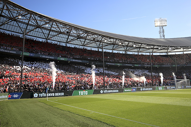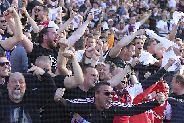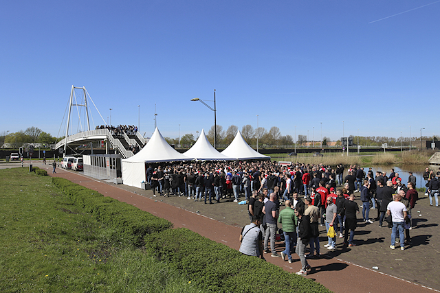 Zes treinen en zo’n 150 bussen brachten de supporters veilig van Amsterdam naar Rotterdam, waarna rondom de uitverkochte Kuip een heerlijk voetbalfeest losbarstte. Met pompende muziek en veel biertjes, in de stralende lentezon. Betere omstandigheden waren eigenlijk niet denkbaar.