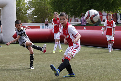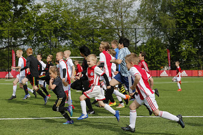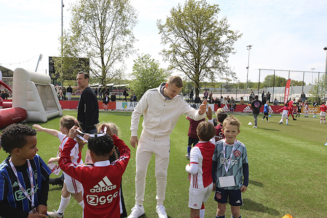 Hoe gaaf is het om te mogen voetballen met je Ajaxhelden? Voor 240 leden van de Ajax Kids Club werd die droom zondag werkelijkheid. Zij deden mee aan de Ajax Kids Tour op sportpark De Toekomst en werden plots verrast met een bezoekje van enkele Ajaxspelers. Bekijk de foto’s maar!