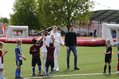 Perr Schuurs gaf hier en daar de nodige tips, terwijl Przemyslaw Tyton bekeek hoe talentvol onze Ajax Kids Clubleden zijn. En Sean Klaiber? Die voetbalde gewoon lekker mee! Natuurlijk werden er ook nog handtekeningen gescoord.