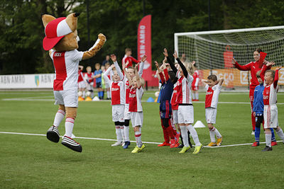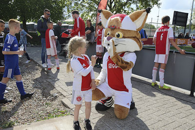 Natuurlijk was Lucky ook van de partij. Onze vrolijke lynx sloot niet alleen aan bij de warming-up, maar bleek zelfs een aardig balletje te kunnen trappen. Of dat allemaal nog niet genoeg was, werden de deelnemertjes verblijd met een verrassingsbezoek van meerdere Ajaxspelers. Tof!