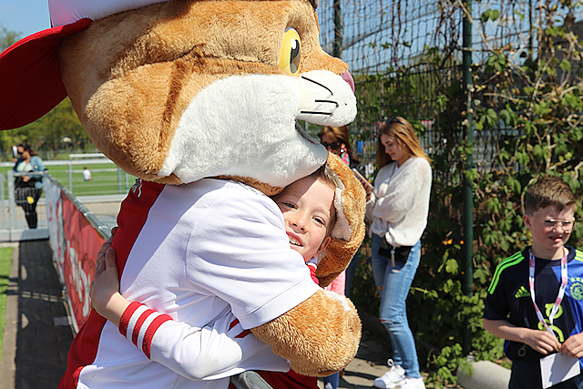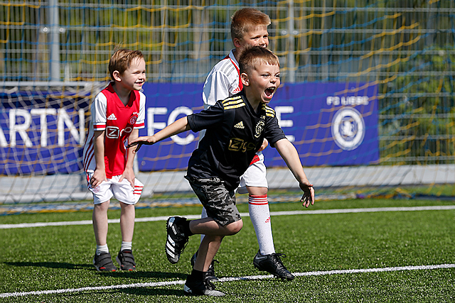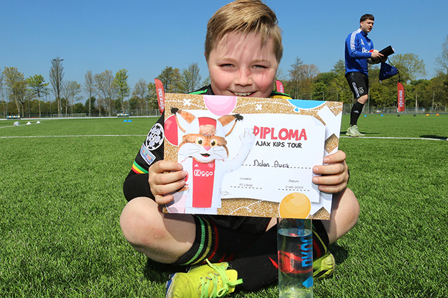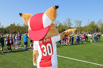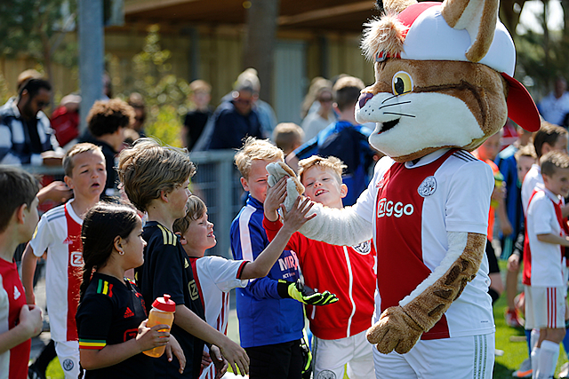 Precies zoals we het graag zien. Lekker een balletje trappen en vooral veel plezier maken. Dat is de Ajax Kids Tour, powered by ABN-Amro. Lucky deelde weer veel high-fives uit en de fotocamera’s klikten er lustig op los.