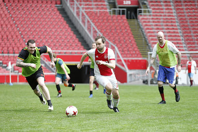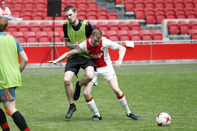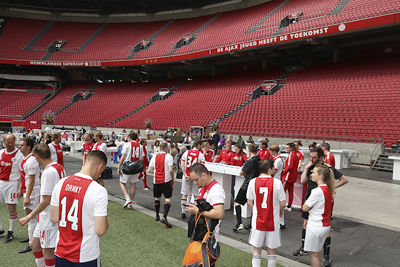 Het is inmiddels een hele fijne traditie: voetballen in de Johan Cruijff Arena voor leden van Ajax Life en Ajax Jonge Schare. Leeftijd maakt daarbij niet uit, jong of oud, voetballen op het heilige gras van de Arena is gewoon heel gaaf!