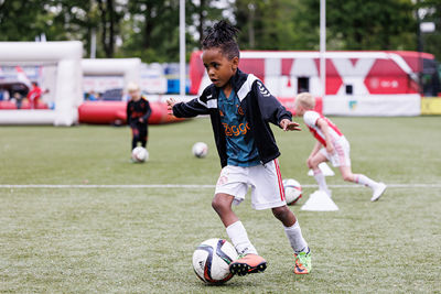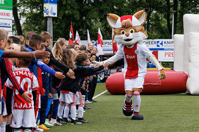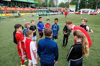 Voetbalspelletjes spelen met leeftijdsgenootjes, lekker babbelen over Ajax en vooral heel veel plezier maken. Dat is de Ajax Kids Tour, powered by ABN-Amro. Afgelopen weekeinde ontving Lucky vele Ajaciedjes op de velden van De Toekomst. Dat noemen we een thuiswedstrijd, maar onze mascotte trekt ook graag het land in.