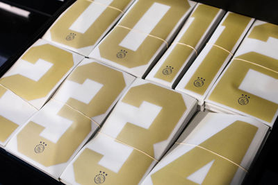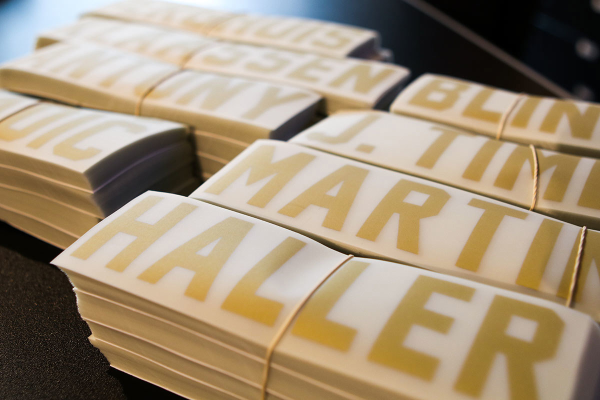 Verder zien we de gouden accenten terug in de kraag, de biezen van de mouw en op de kousen. Het bleek niet genoeg, want er is gekozen om ook volledig gouden bedrukking op het shirt aan te brengen. Namen en rugnummers worden geheel goudkleurig. Niet wit met een goud randje. Nee. Volledig goud... Oef.