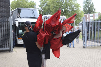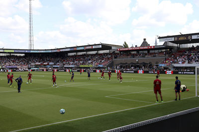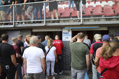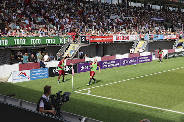 Toen de spelers het veld betraden tijdens het afspelen van de Sparta-marsch was het gezelligheid troef in het stadion. Het uitvak liet zich meteen horen en vooral ook zien. Het vlagvertoon was heerlijk om te aanschouwen.