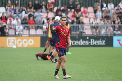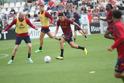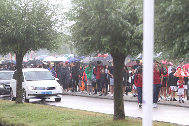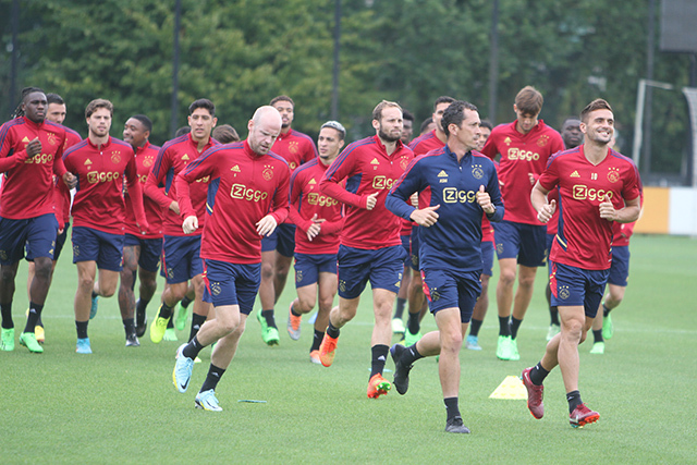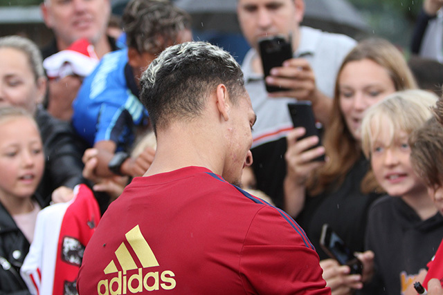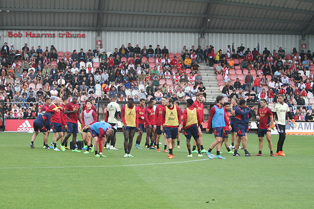De regen kwam in aanloop naar de open training werkelijk met bakken uit de lucht. Nee, maar echt niet normaal. De weergoden bleken de afgereisde Ajacieden gelukkig toch nog goed gestemd, want tegen de tijd dat de spelers het veld opkwamen, stopte het met regenen.